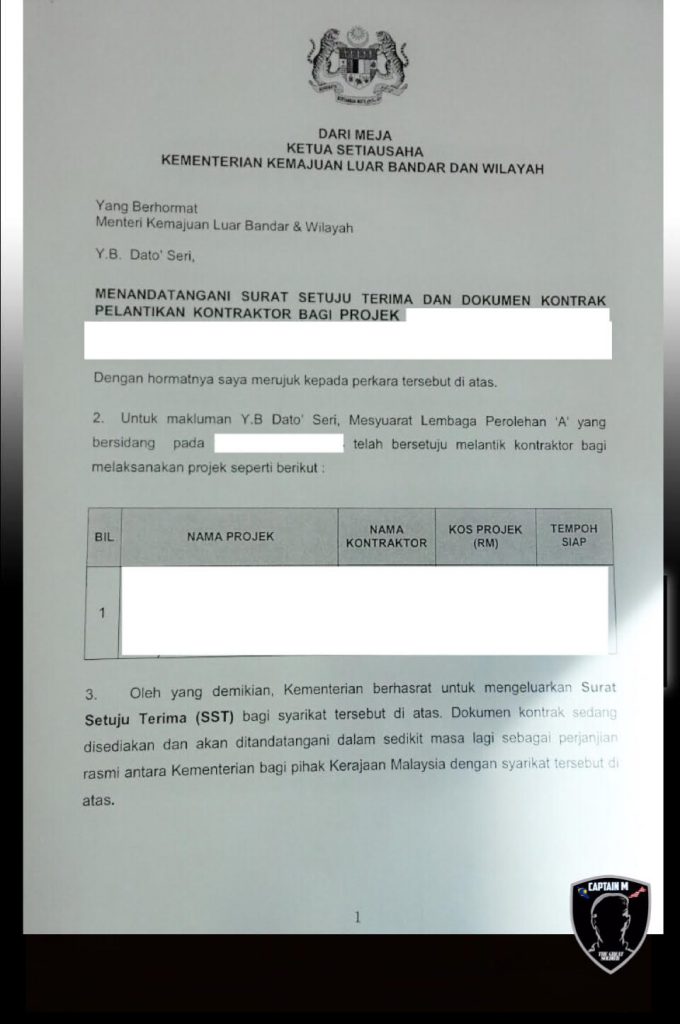 Ketika Surat Setuju Terima (LOA) mahu ditandatangan pun perlu dirujuk Menteri iaitu Dato' Seri Shafie Apdal.
