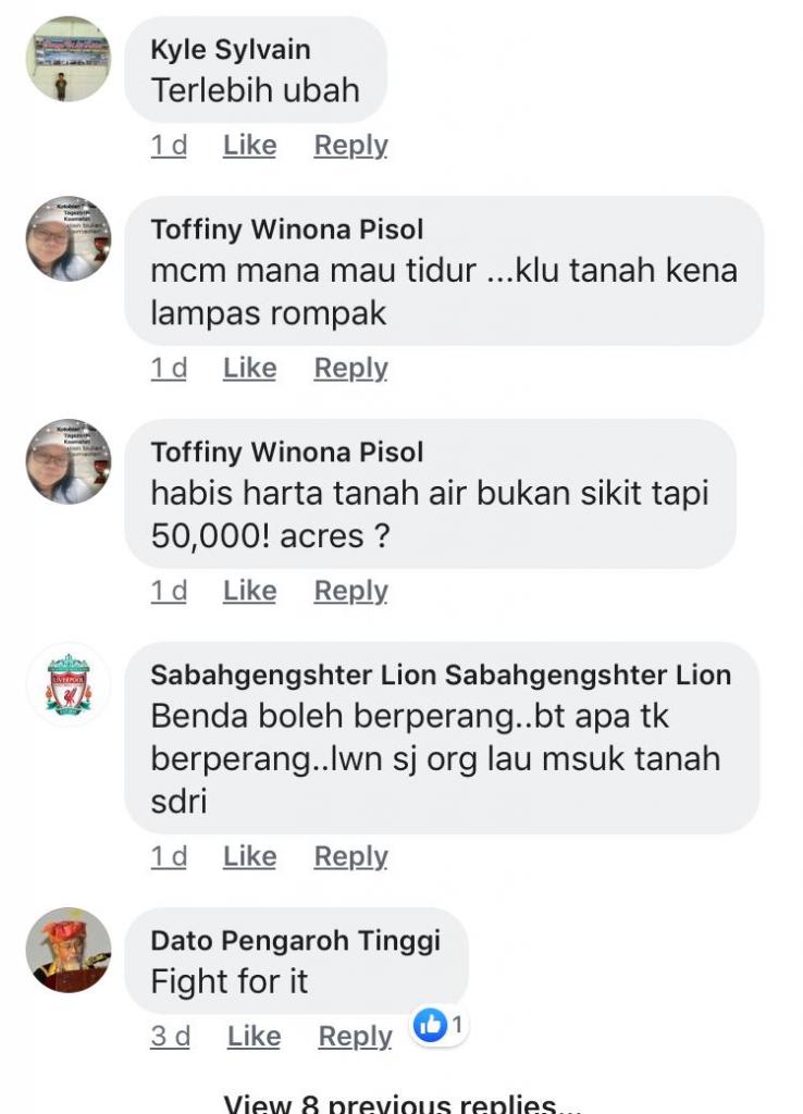 “Tidak tahan melihat keadaan orang tempatan terhimpit sudah ni. Terus terang tak mahu lagi kejadian seperti ini”. kata seorang pengguna facebook Viclon Lon.