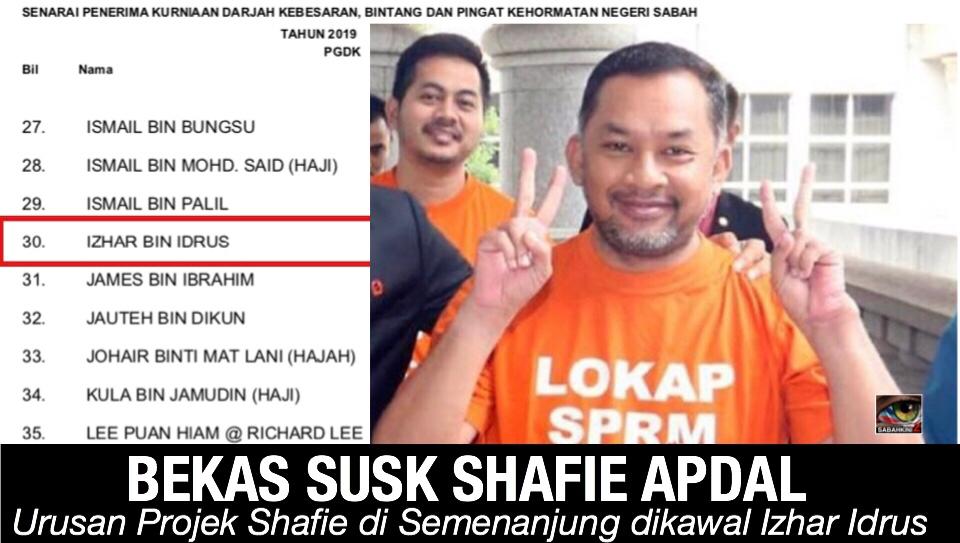 Rangkaian rasuah Shafie Apdal sangat licik. Yang menjadi mangsa ialah pegawai. Namun oleh kerana mereka menjadi saksi menutup mulut maka hadiah dianugerahkan ialah gelaran Datuk. Sehingga sekarang Izhar Idrus kekal sebagai Setiausaha peribadi Datuk Shafie bagi mengurus projek Shafie di Semenanjung. Malah semua projek KPLB di Sabah melalui Izhar Idrus ini berurusan dengan Menteri serta pegawai KPLB. Banyak projek-projek KPLB di Sabah dibolot oleh mereka. Bagi projek atau pelabur dari Semenanjung yang mahu masuk ke Sabah mesti melalui Izhar Idrus ini.