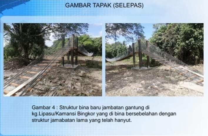 “Saya telah memohon kepada Kerajaan Persekutuan untuk membina dan membaiki jambatan gantung di kawasan saya (Bingkor),” katanya.