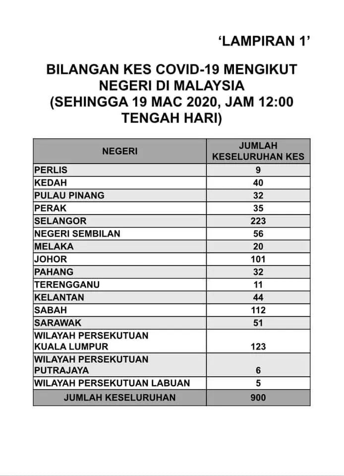 Kementerian Kesihatan mengumumkan 110 kes positif Covid-19 baru hari ini, menjadikan jumlah keseluruhan kepada 900 kes.