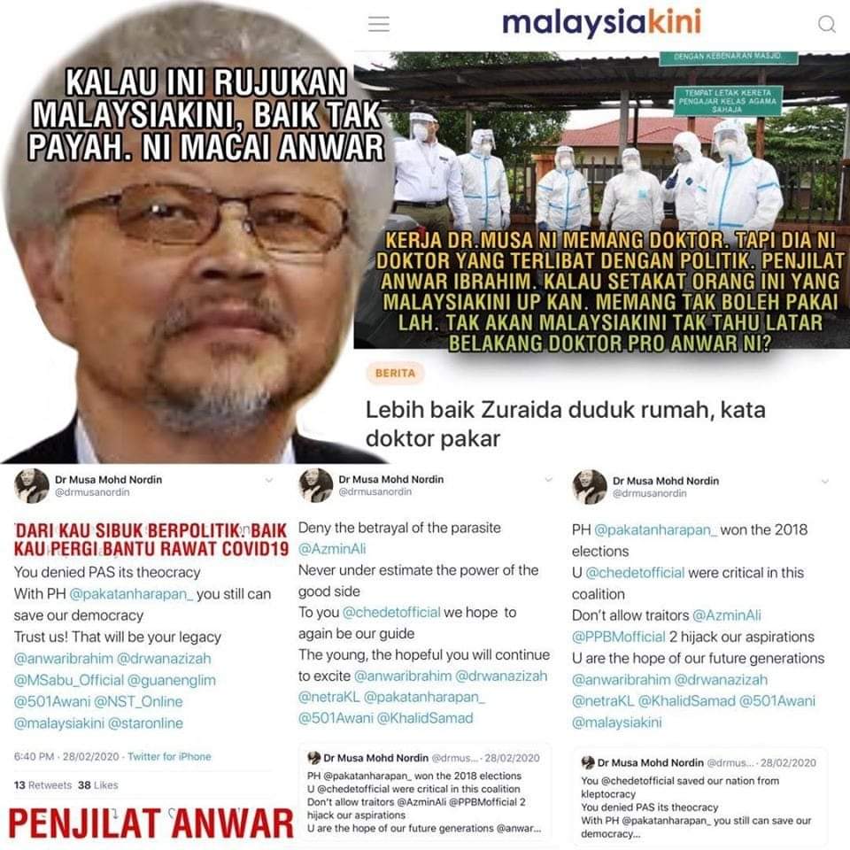 Sebelum ini Kerajaan PH tidak peduli siapa Dr Musa Nordin ini memandangkan beliau adalah penyokong kuat Kerajaan PH.Tulisan beliau dalam Muslim Professionals Forum (MPF), Bersama Menteri Kesihatan lama Dr Dzulkifli dan juga pelbagai rancangan TV menjelaskan siapa beliau. Jadi tidak siapa mahu mengusiknya.