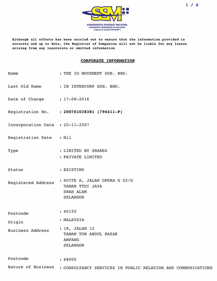 Tiga nama yang dikaitkan dengan syarikat The IO Movement Sdn Bhd ialah Ivan Omar, Dato' Ifrahim Baydr Omar dan Noradilla Noorazam. Dato' Ifrahim Baydr Omar dan Noradilla Noorazam inilah dikatakan paling rapat dengan Musa Yusof KP Tourism dan Mohammadin Ketapi. Lantaran itu SUSK Mohammadin yang menguruskan segara dokumen sokongan projek The IO Movement Sdn Bhd diburu. Penama Syarikat The IO Movement Sdn Bhd, Rachel Chew Kay Leng Omar adalah isteri Ivan Omar. Pemegang sahamnya Tunku Izrina Mazuin isteri Ifrahim Baydr Omar.