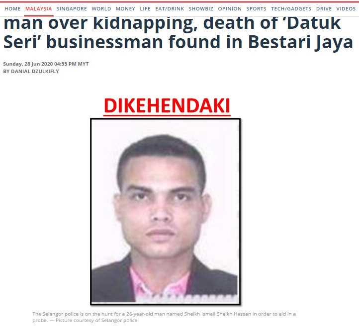 Polis Selangor berkata mereka sedang memburu seorang lelaki berusia 26 tahun yang dikenali sebagai Sheikh Ismail Sheikh Hassan atau nama timangan 'El' untuk memudahkan siasatan.