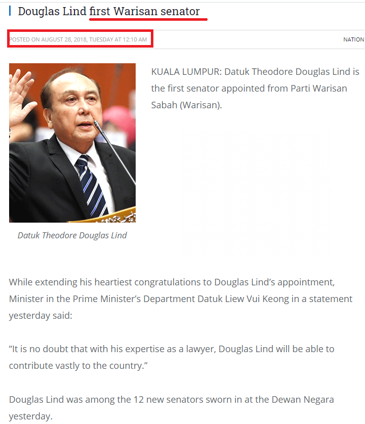 Siapa tidak kenal Douglas Lind Peguam yang sentiasa mewakili Shafie Apdal terutama kes perebutan Ketua Menteri Sabah. Beliau menang kes itu malah Douglas diberi jawatan Senator pertama Warisan di Dewan Negara.