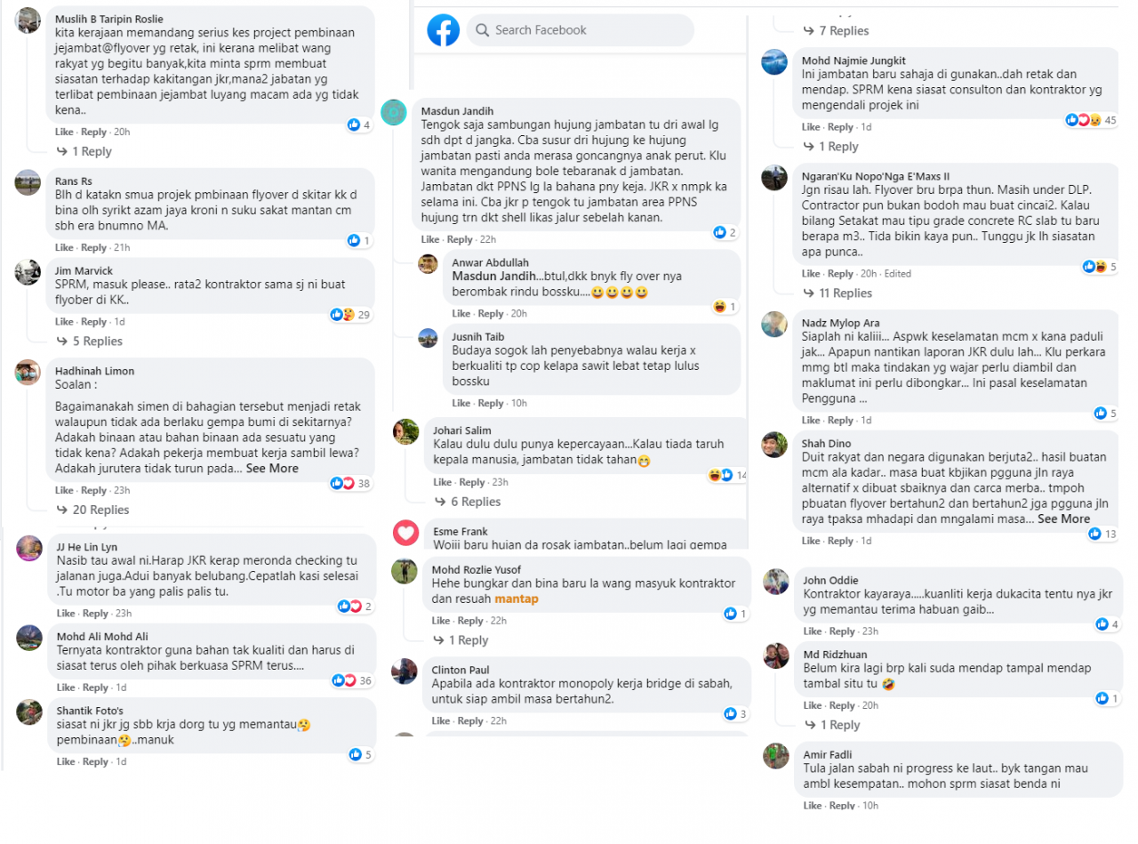 Tinjauan di laman sosial rata-rata netizen mempersoalkan bagaimana projek yang baru dilancarkan retak. Apakah sebabnya? apakah bahan kurang berkualiti, faktor alam dan mungkin rasuah.