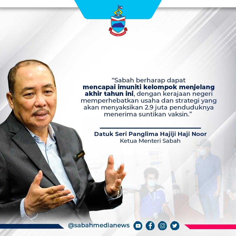 Sekalipun jumlah pemberian pendaftaran dan penerima vaksin COVID-19 Negeri Sabah masih terendah dalam negara namun Ketua Menteri Datuk Seri Panglima Hajiji Haji Noor yakin program vaksin Sabah akan mencapai sasarannya sebelum disember tahun ini.