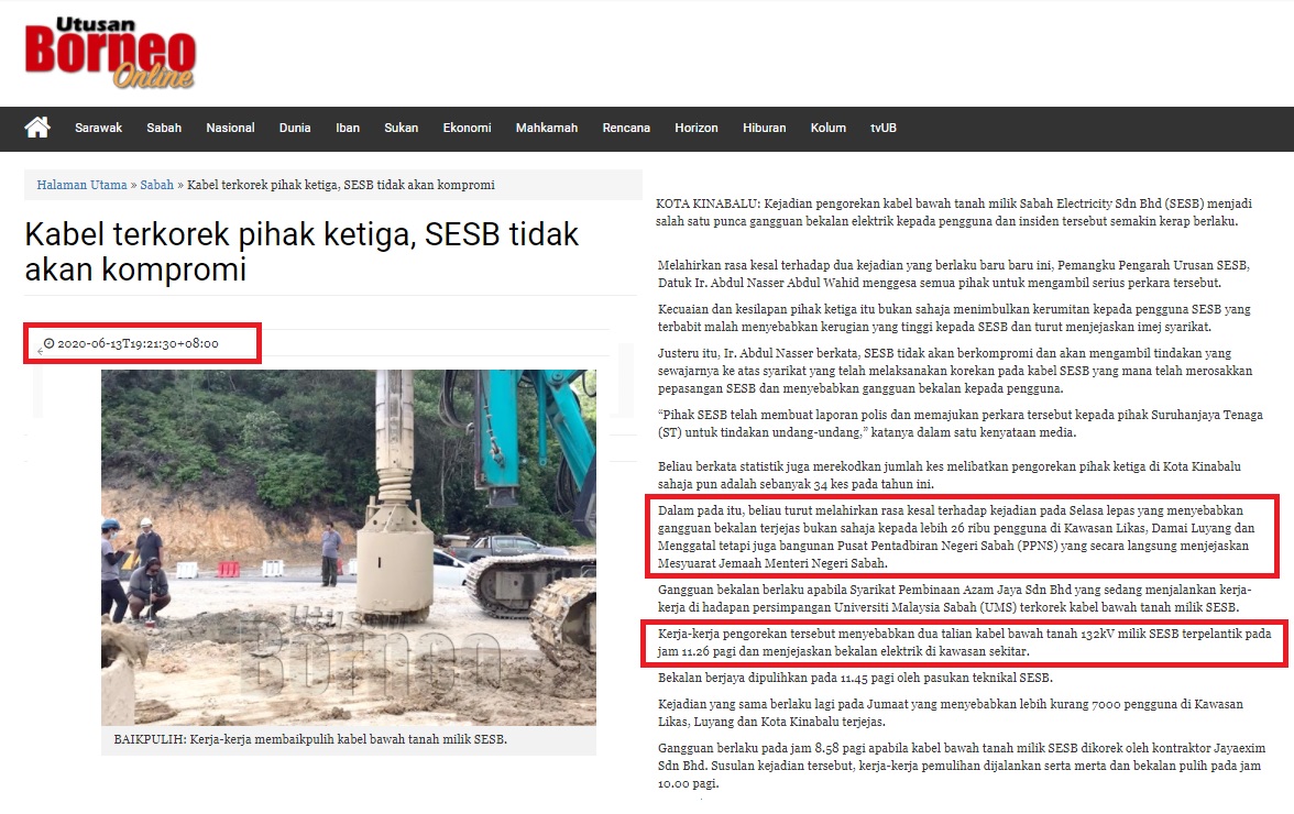 “Di sebalik usaha-usaha pencegahan yang dilakukan bersama mereka termasuk dengan pihak JKR, insiden seperti ini tetap berulang dan SESB juga sedang dalam proses akhir untuk mengenakan tindakan undang-undang terhadap syarikat berkenaan,” katanya