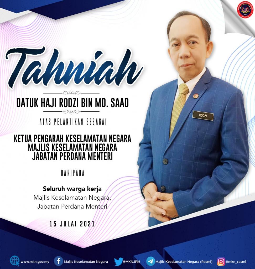 Rodzi Md Saad dilantik sebagai ketua pengarah Majlis Keselamatan Negara (MKN) yang baharu.