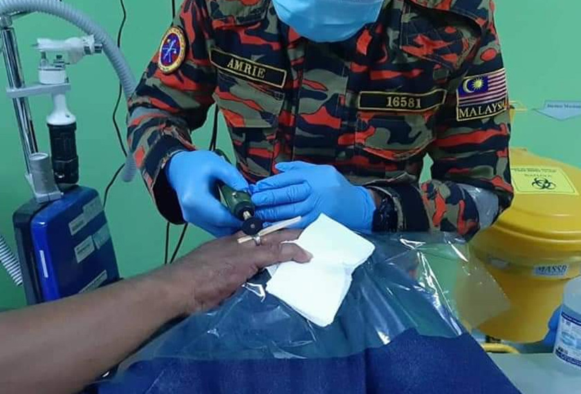 “Anggota bomba memotong cincin berkenaan menggunakan alat pemotong khas bagi mengelakkan kecederaan terhadap mangsa.