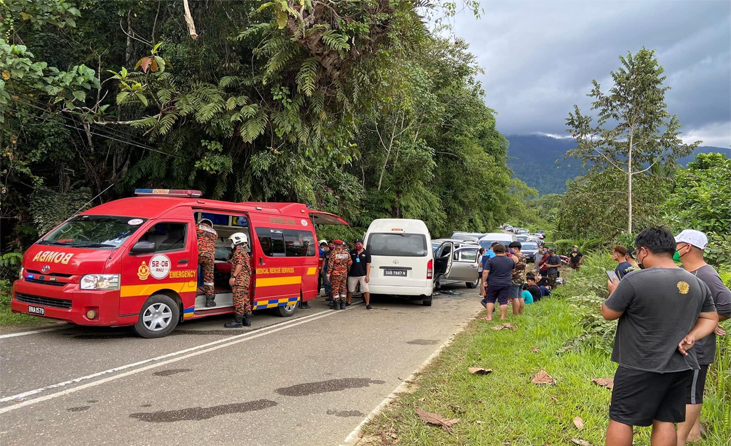 Dalam kejadian kira-kira jam 3 petang itu, van jenis Toyota Hiace berkenaan, bertembung dengan sebuah Isuzu DMax.