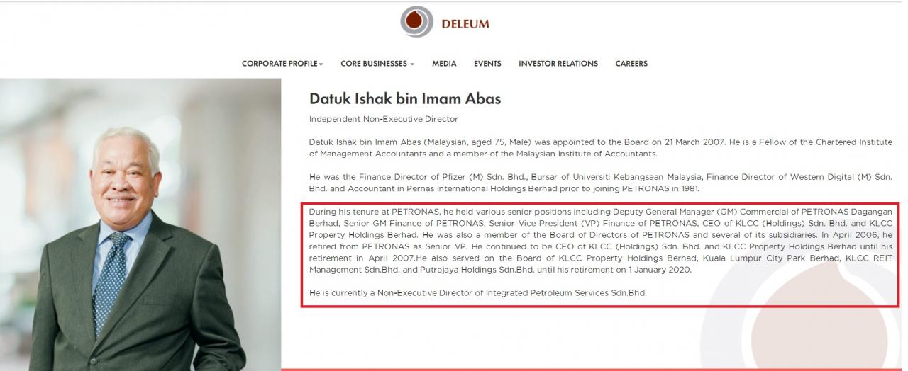Apa yang pasti Deleum Berhad punya kabel besar untuk mendapat projek-projek Petronas. Apa pun isu Deleum Berhad dan anak syarikatnya tetap akan diberi projek Petronas. Jangan lupa adanya kuda Deleum seperti Datuk Ishak Imam Abas dan Datuk Manharial a/l Ratilal bekas pengurusan kanan Petronas pastinya sangat tahu selok-belok Petronas untuk Deleum Berhad menyapu projek Petronas.