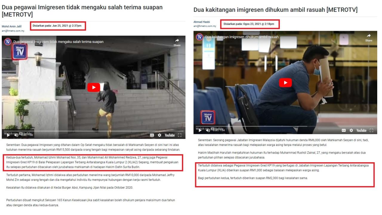 Jika dilihat laporan media sejak 2020 lagi ramai pegawai imigresen KLIA ditahan SPRM dan didakwa di mahkamah