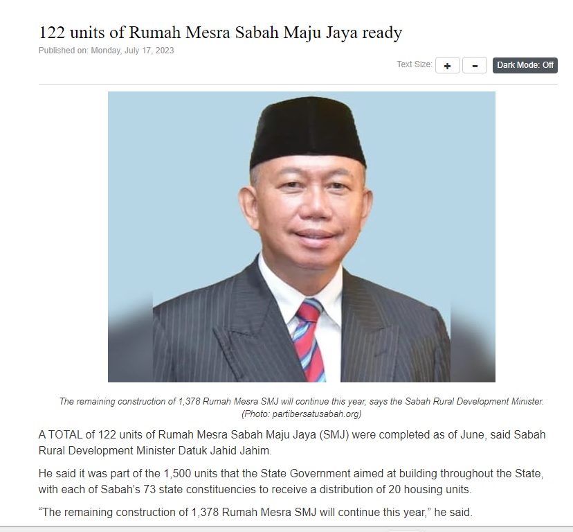17 Julai lalu Menteri Pembangunan Luar Bandar Sabah Datuk Jahid Jahim memaklumkan setakat Jun kerajaan telah menyiapkan 122 unit Rumah Mesra Sabah Maju Jaya (SMJ).