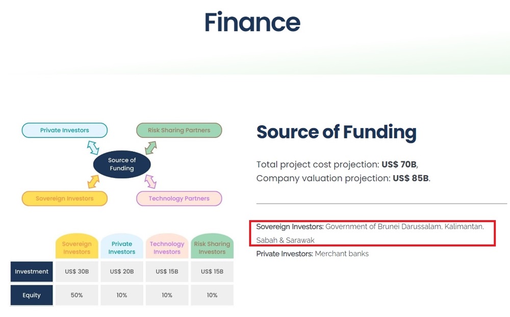 Isu terbesar ialah siapa pembiaya projek ini? Menurut Brunergy pembiaya projek bernilai USD 70b hingga USD 85b (Hampir 400bilion) ini dibiayai oleh Kerajaan Brunei, Kalimantan, Sabah dan Sarawak.