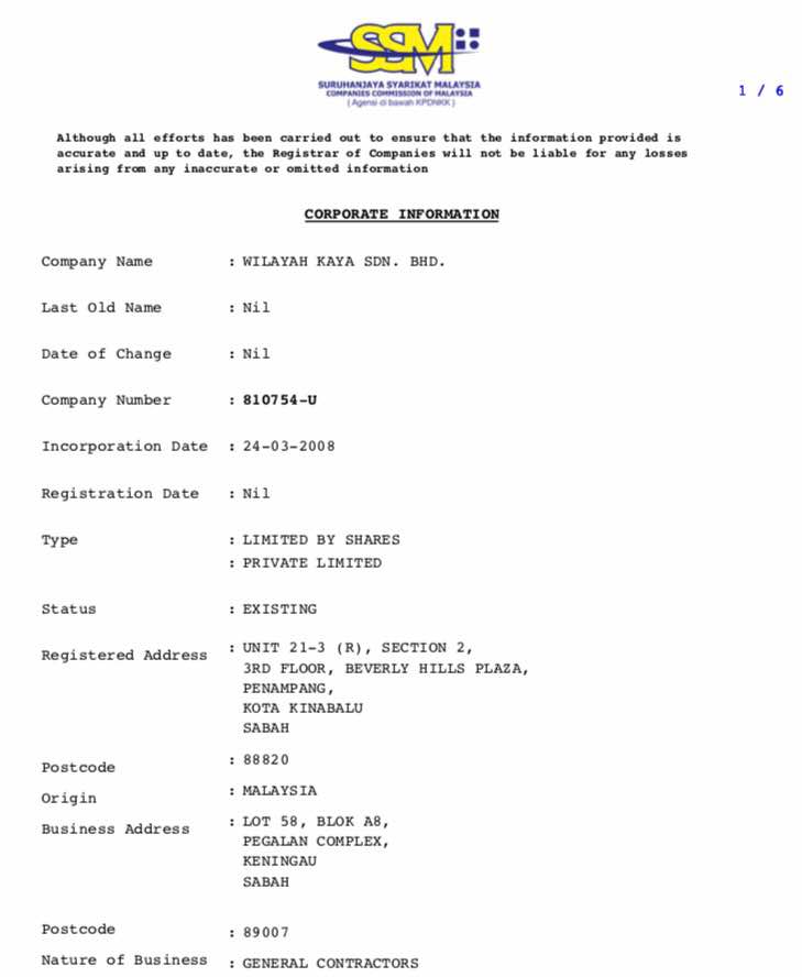 Semakan di SSM menunjukkan penama Syarikat Wilayah Kaya Sdn Bhd adalah saudara Dato’ Nik Nazif iaitu Nik Mohd Syukimi bin Nik Mohd Noor. Beliau juga merupakan pemilik syarikat NMS Perdana Contractor.