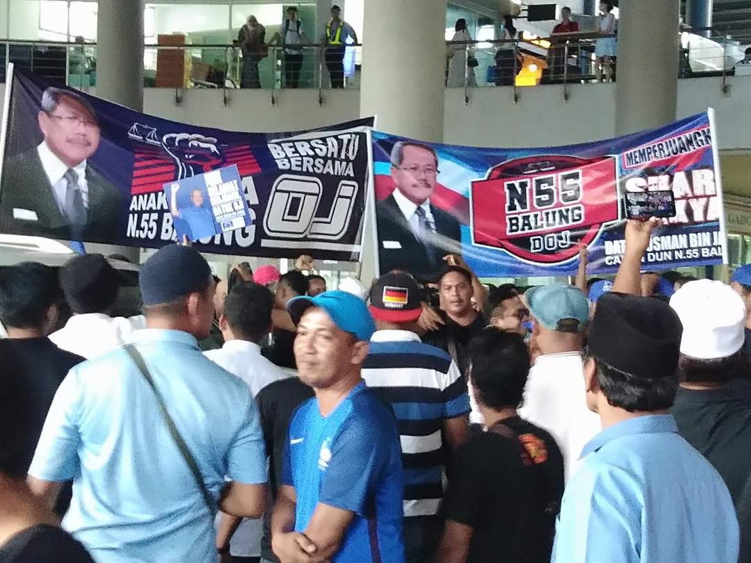 Mereka mengangkat pelbagai placard dengan mesej-mesej seperti "Kami mahu calon dari UMNO Tawau", "Kami menolak calon terjun payung", "Pilih satu atau 14,000 pengundi Balung" dan "N55 Balung tolak Osman Jamal".
